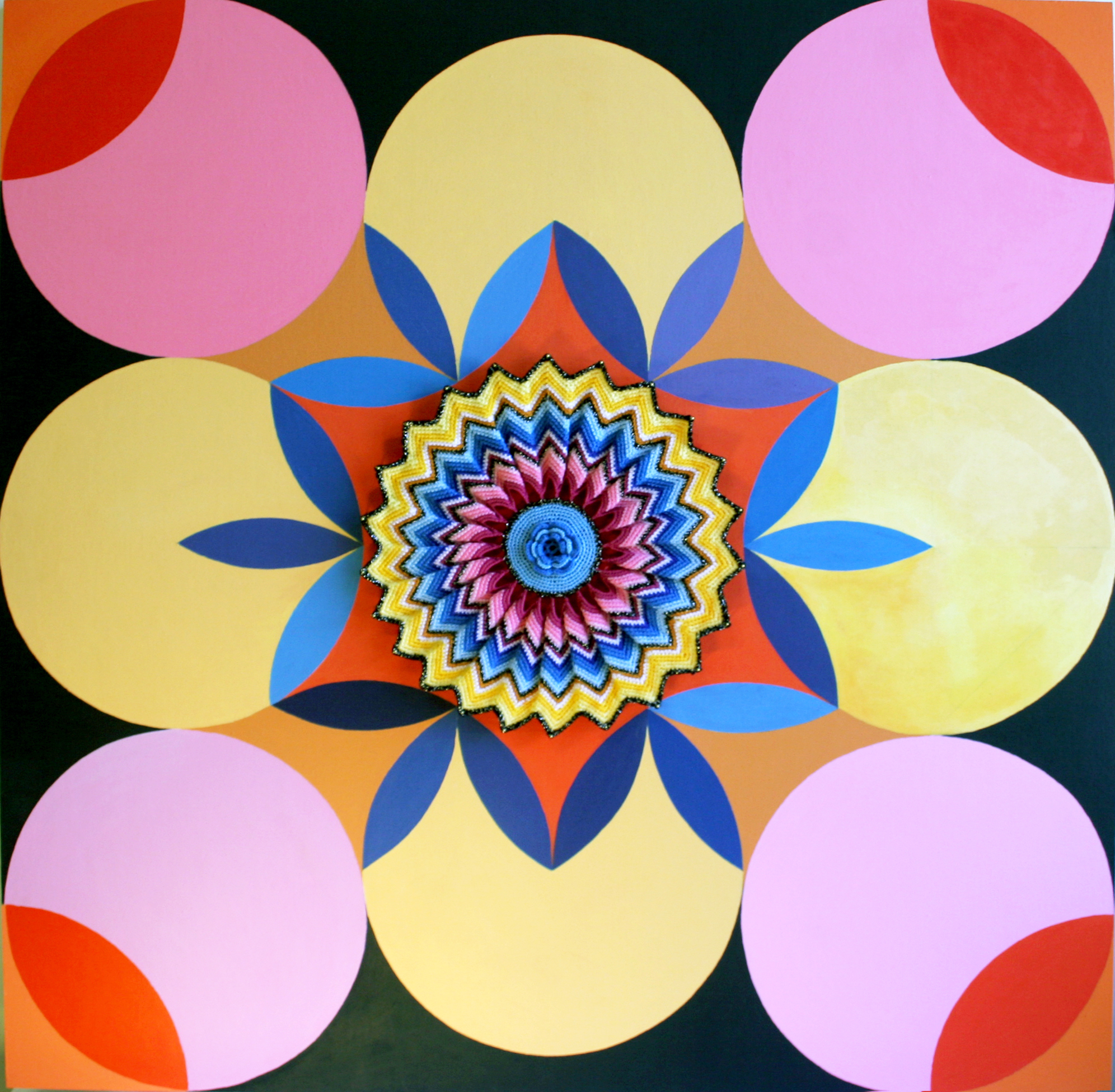 "Pute 3" - heklet pute og akrylmaling på MDF-plate // "Pillow 3" - crocheted pillows and acrylic paint on MDF board - 2008