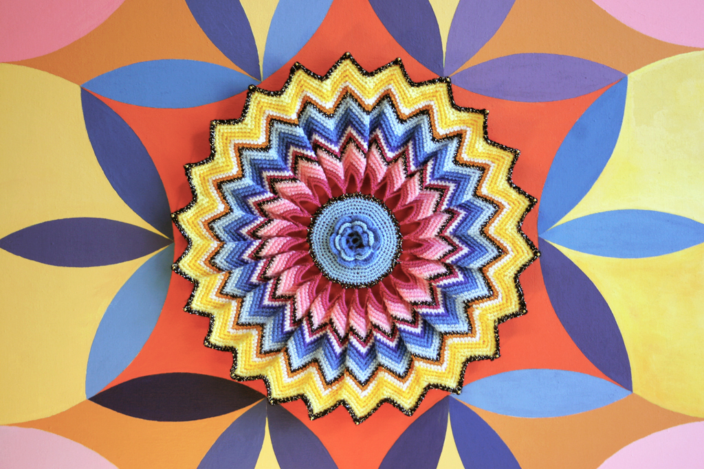 "Pute 2" - heklet pute og akrylmaling på MDF-plate // "Pillow 2" - crocheted pillows and acrylic paint on MDF board - 2007