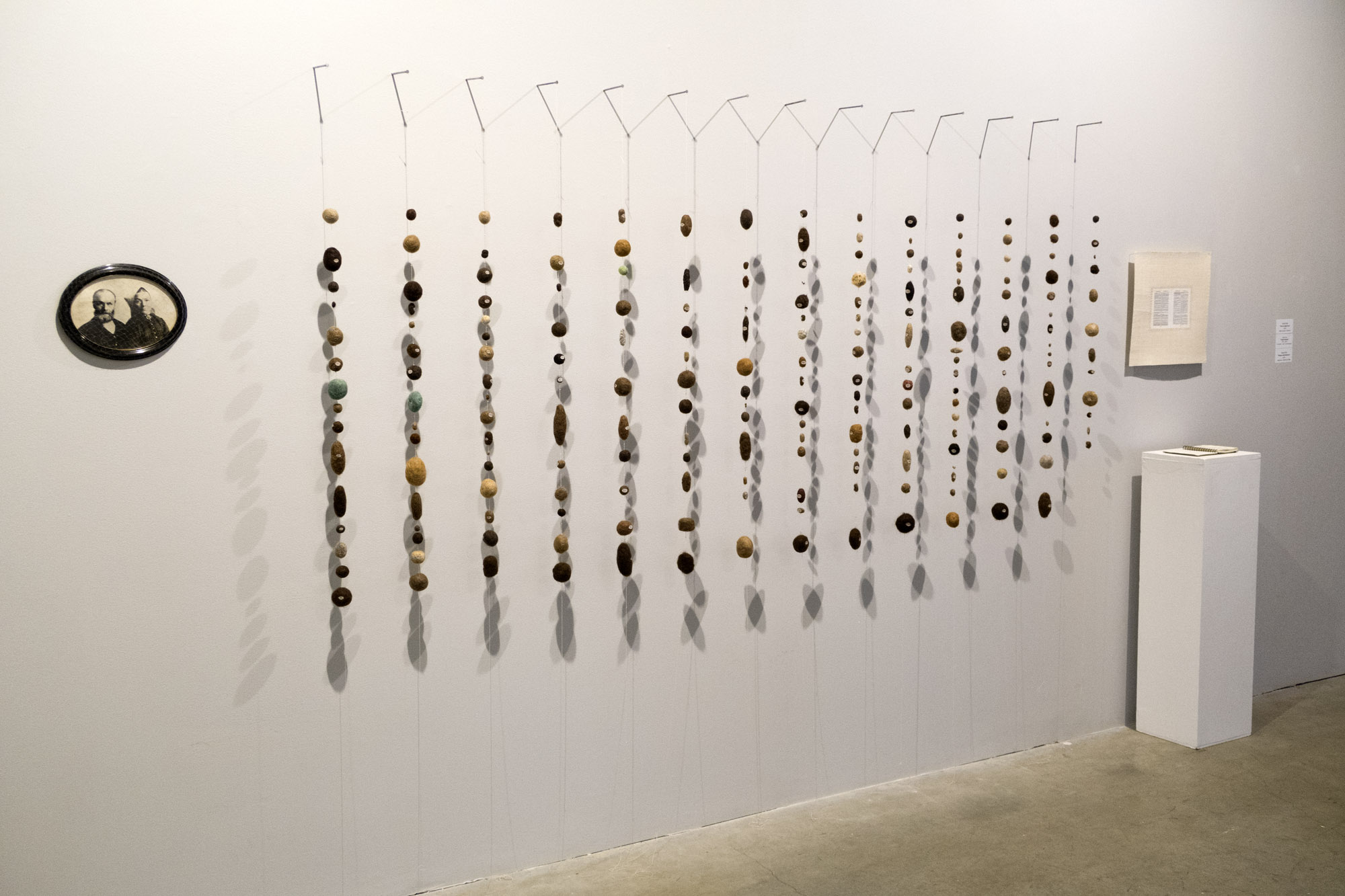 “Mjuke hårperler”, hår fra 150 ulike kvinner, foto av ukjent par, bibelvers og bok med info om kvinnene som har gitt hår.
